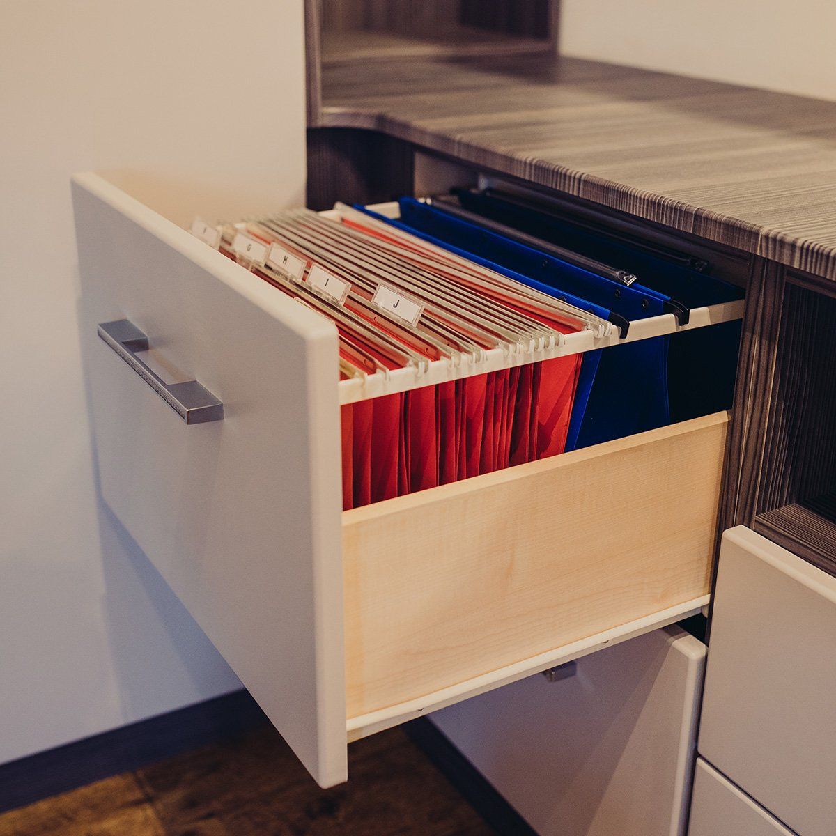 From curved or angled work surfaces and storage solutions, keyboard slides to hanging files, we’ll design, build and install home office fitted furniture that works around you, in a stylish finish that you choose.